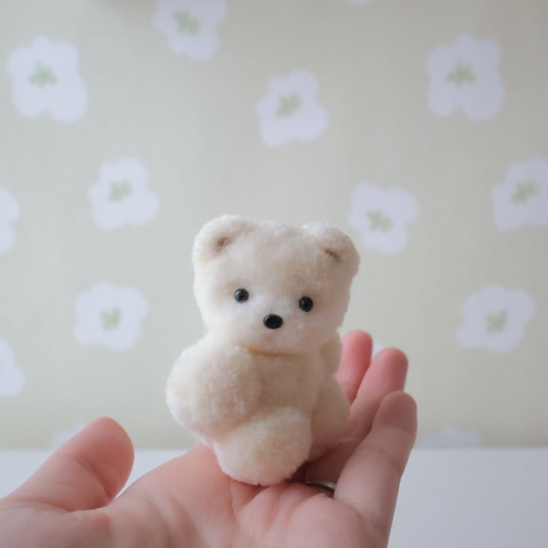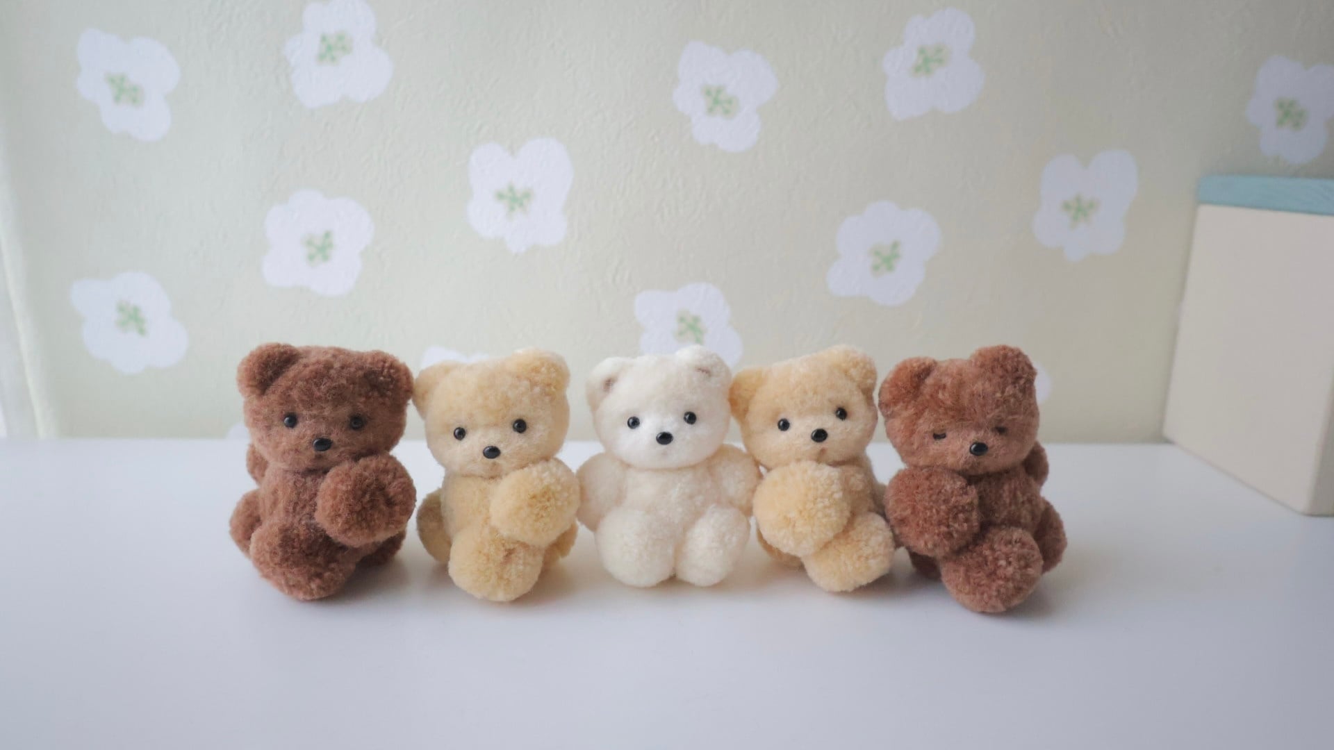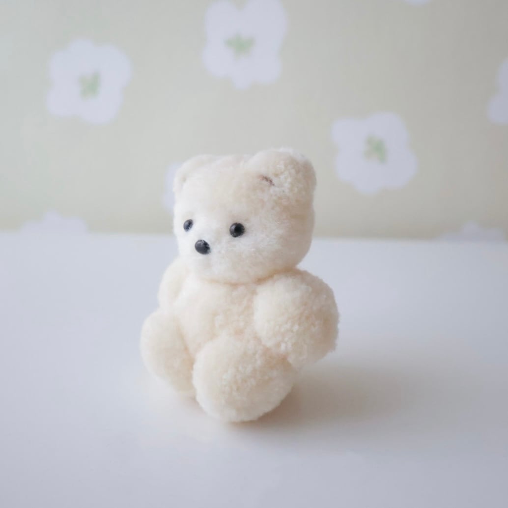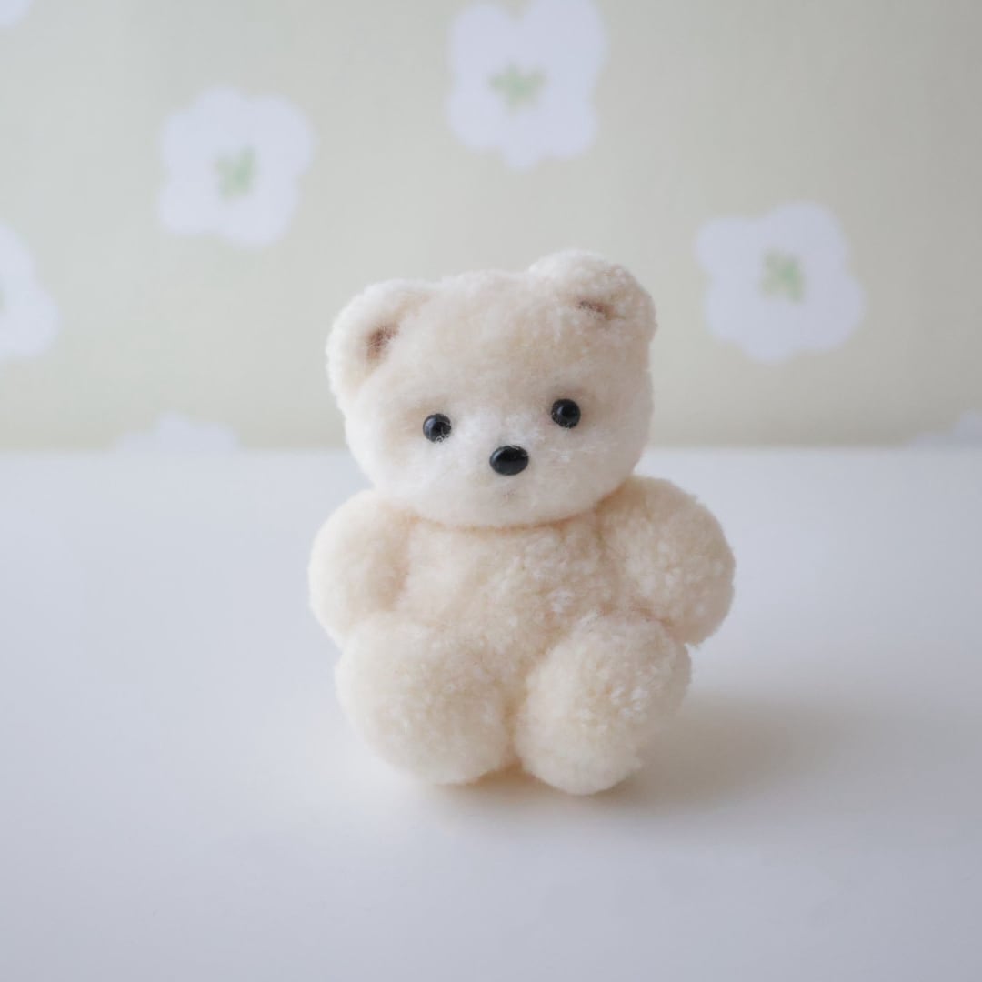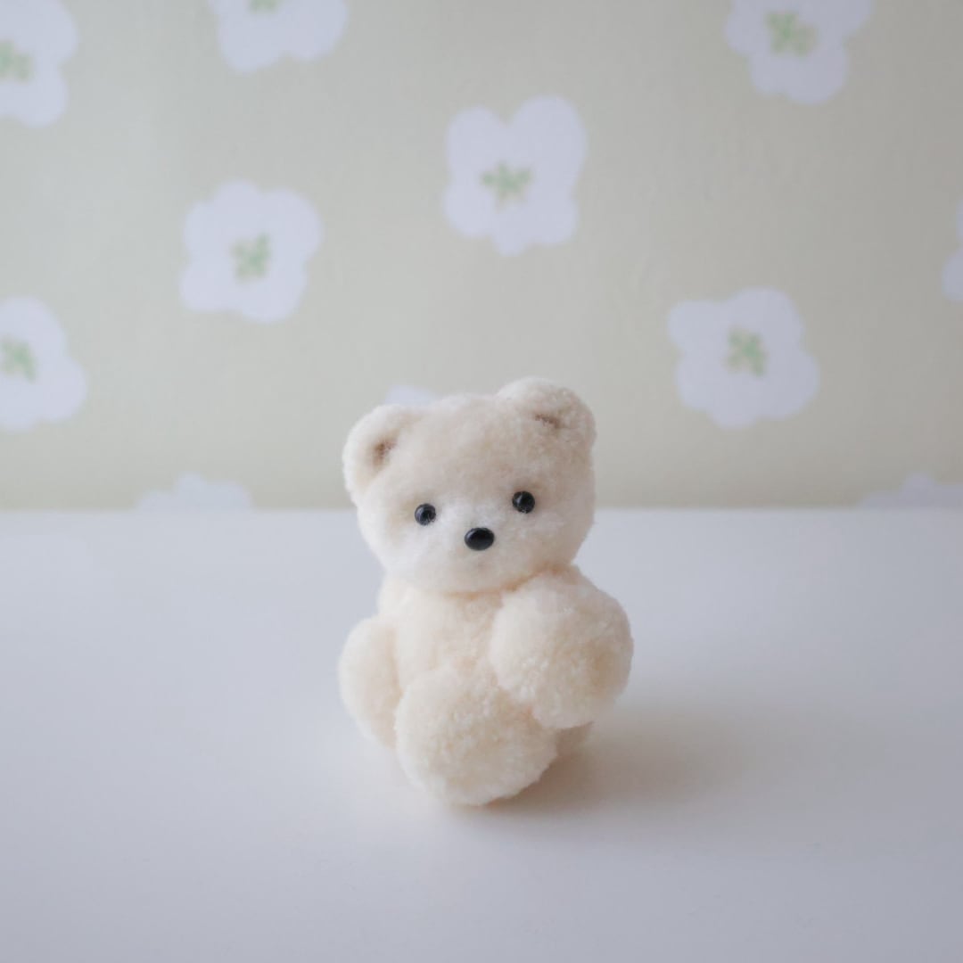 毛糸ぽんぽんから誕生した、ちいちゃなしろくまちゃんです´-